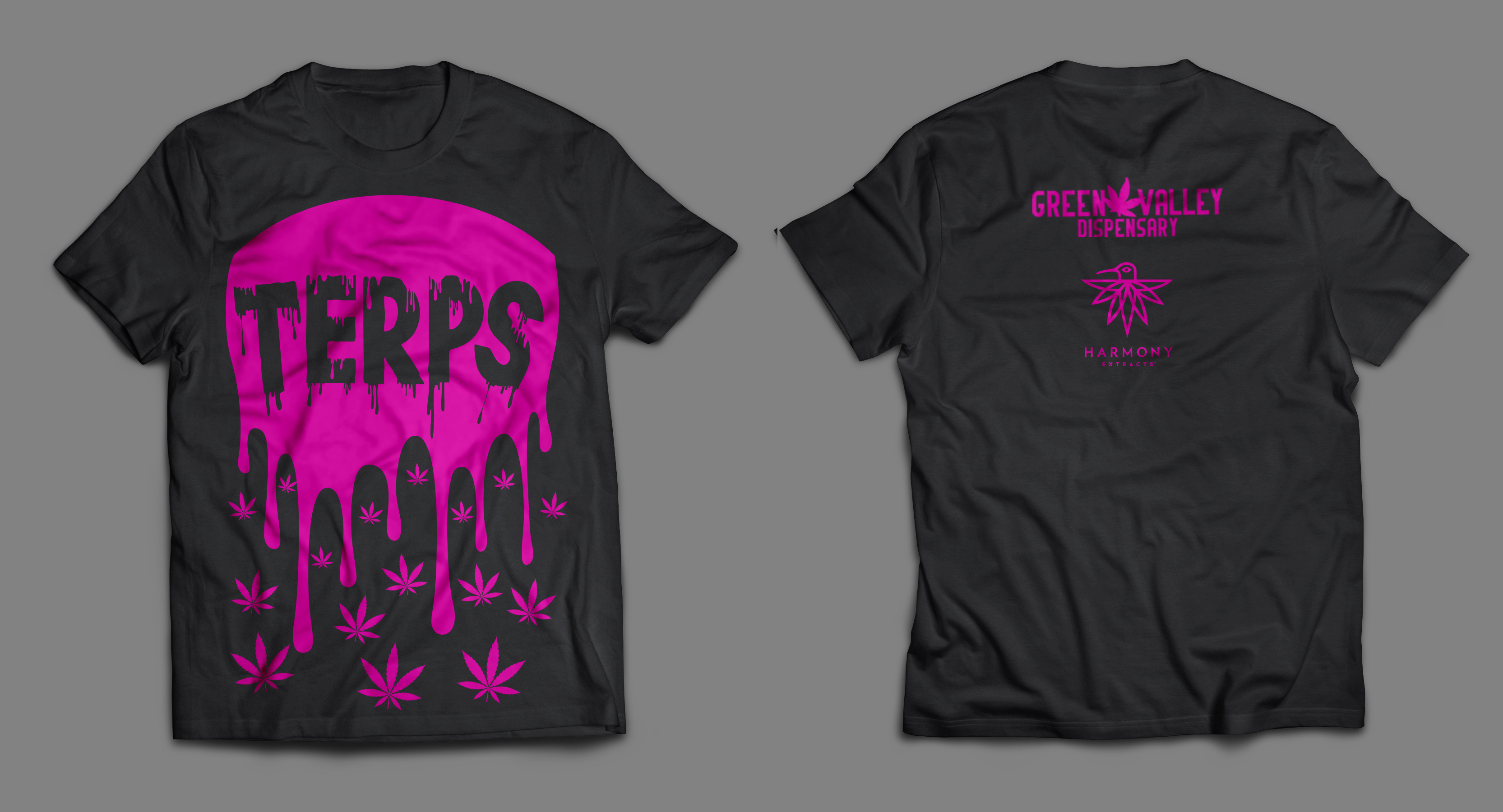 The brands needed employee apparel that went beyond standard uniforms—something that reflected cannabis culture, drew attention, and enhanced the in-store experience. The final designs achieved this by combining bright, playful graphics with strong branding, creating shirts employees were proud to wear.